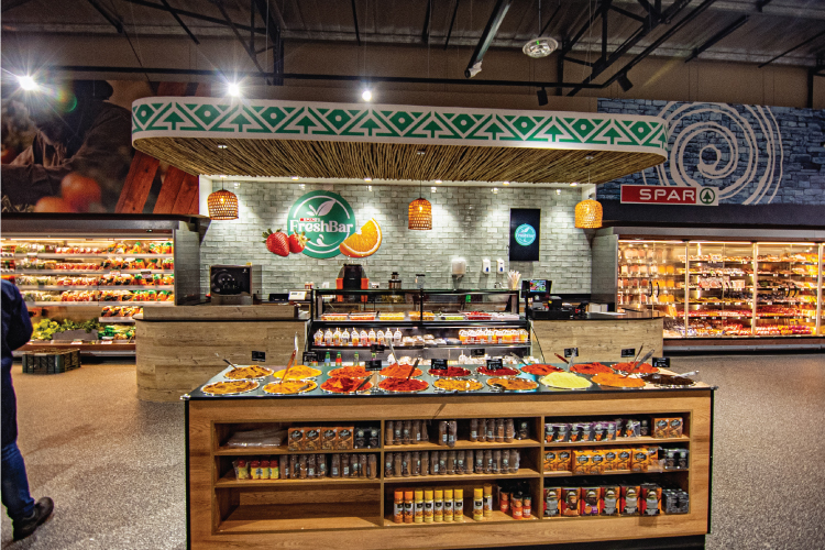 The supermarket also includes a self-service range of fresh spices and grains. An updated product assortment comprising 6,300 products ensures that local customers can meet all of their grocery needs in one location. Also included at the flagship SPAR supermarket location is a Tops at SPAR liquor store with a walk-in drinks chiller.